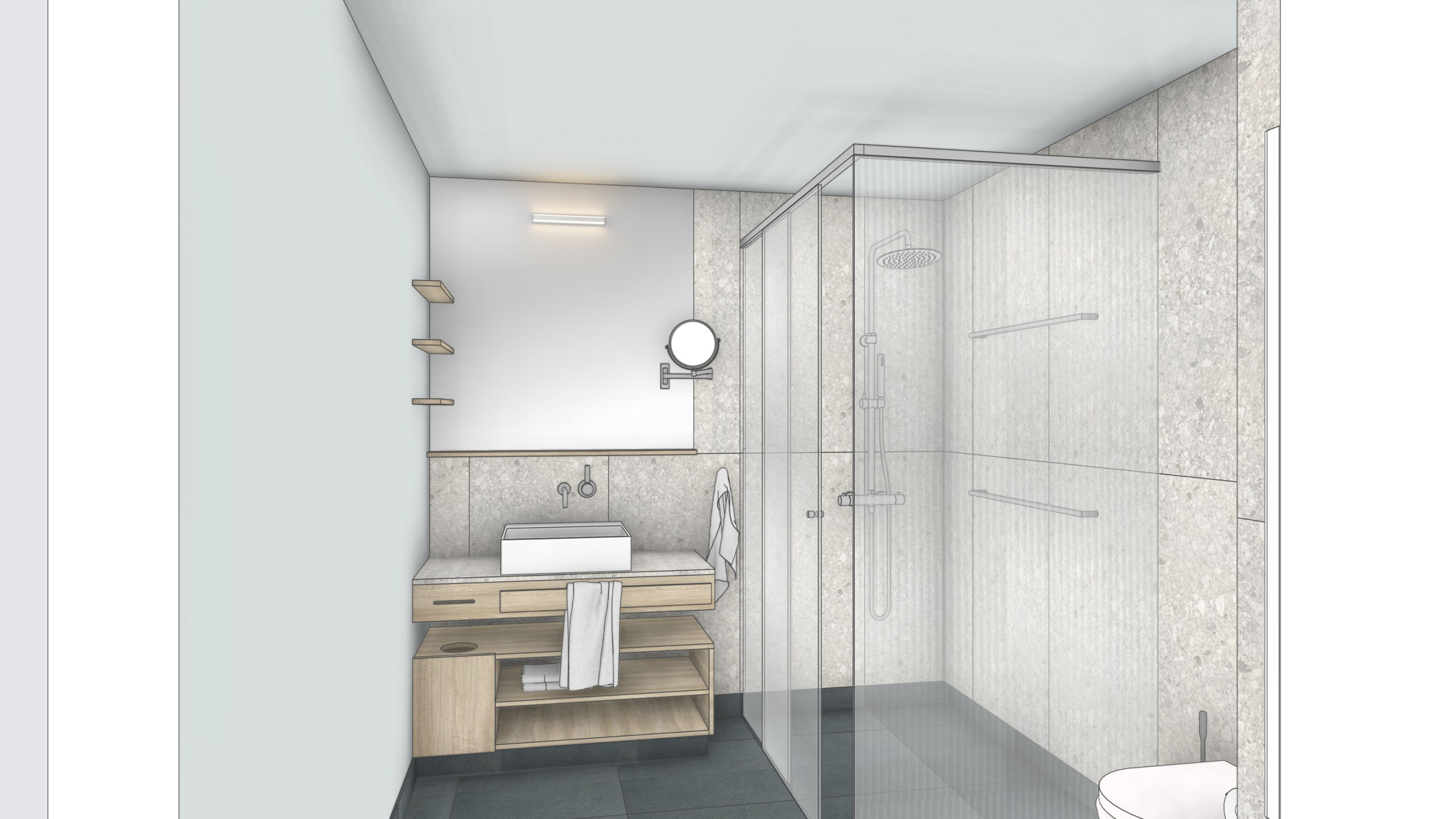Badezimmer- und Toilettenaufteilung